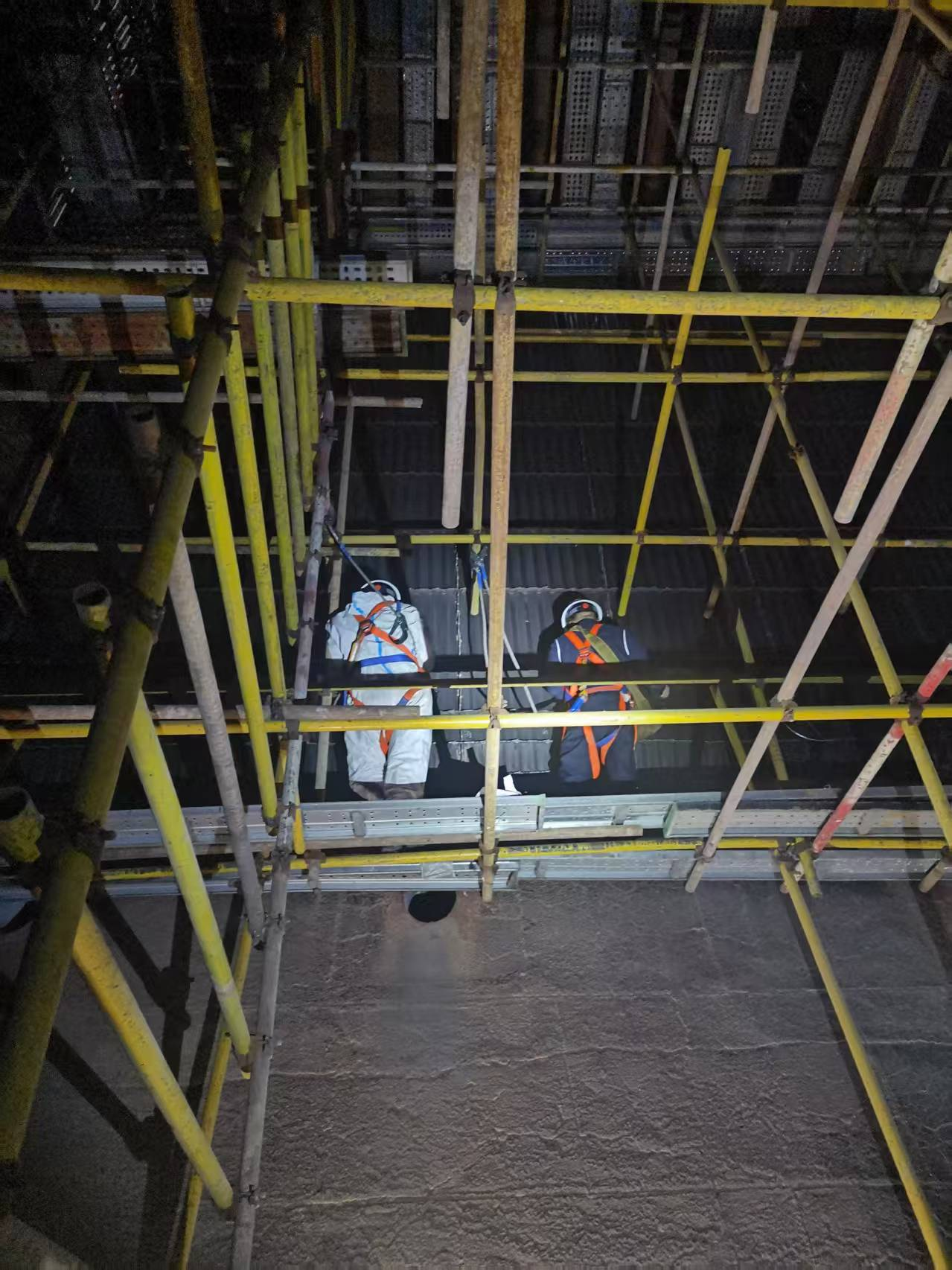 炉膛水冷壁检验环节尤为艰难:密闭空间内温度持续高达35℃以上,检验人员需攀爬数十米高的脚手架,在昏暗环境中一手持手电筒照明,一手记录检测数据,可能存在踏空风险。此外,复杂的管路布局与承压设备配置进一步加剧了技术研判难度。